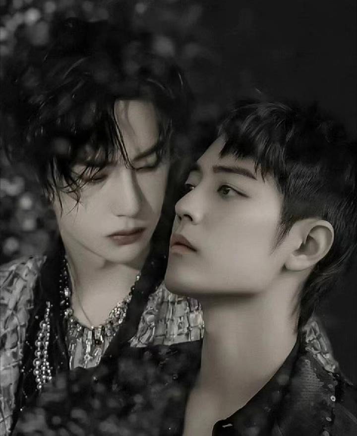 王一博面无表情地抱着肖战,感觉到有热热的东西在他的脖子旁边喷薄而出,然后顺着脖颈淌到他的黑色里。